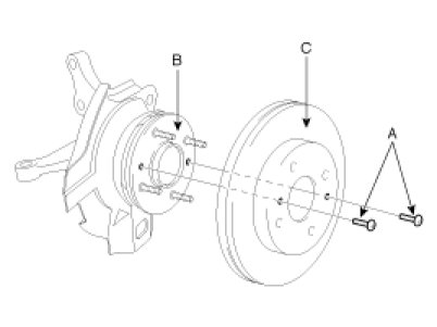 1. After removing the fixed screws(A) mounting the brake disc(C), remove the brake disc(C) from the hub(B).