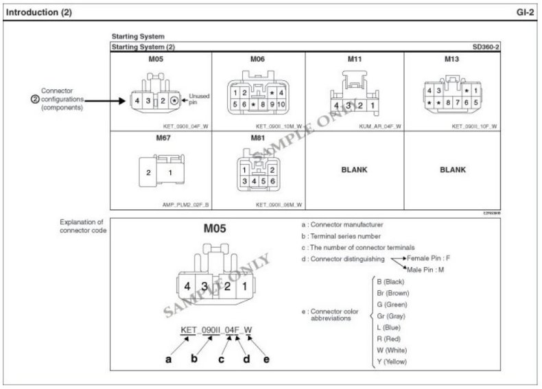 - It shows the front of the connector on the harness side when not to the harness connector. The terminal number on each connector can be obtained by following the pattern used in (5) connector view and numbering order. Unused terminals are marked with an asterisk (*).