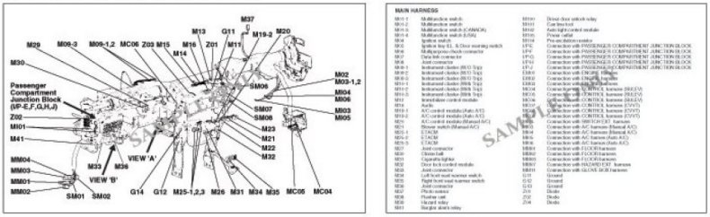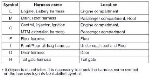 Electrical wiring connectors are classified according to the wiring parts in the Harness Layouts.