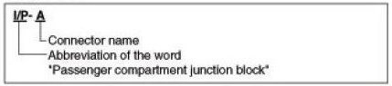 A junction block identification symbol consists of a wiring harness location classification symbol corresponding to a wiring harness location and number corresponding to the connector in the junction block.