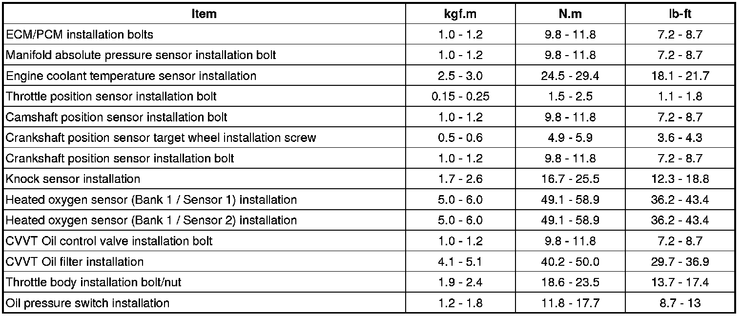 Tightening Torques
