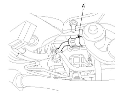 1. Drain the power steering fluid by disconnecting the return hose (A).
