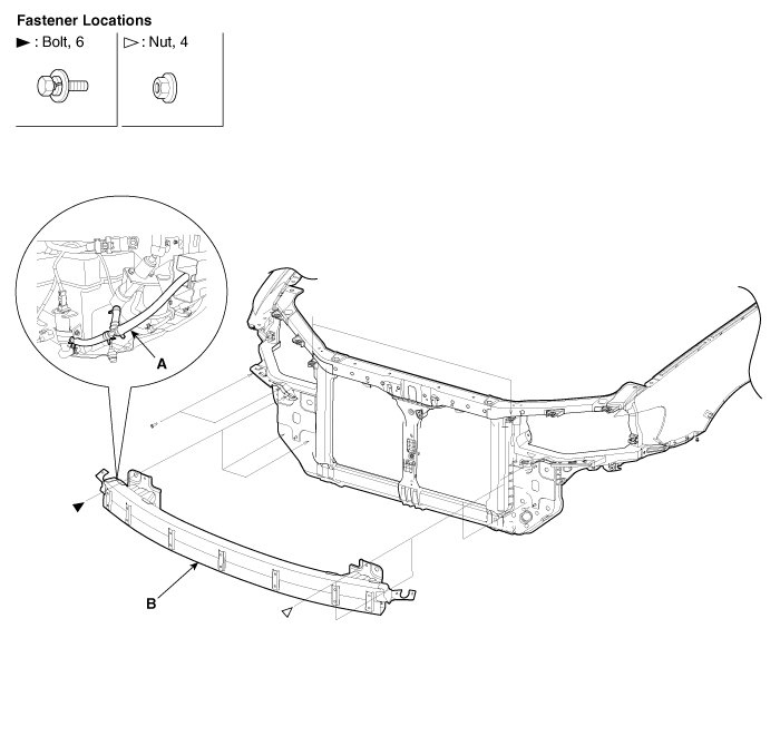 4. Remove the front bumper rail (B).
