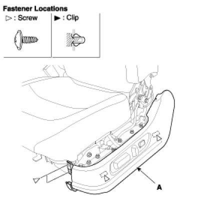 2. Loosen the recliner mounting screw and clip, then remove the recliner cover (A).