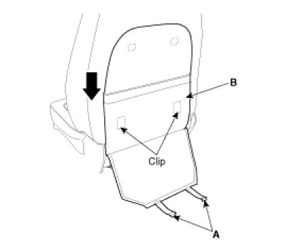 8. Disconnect the aplix (A) on the front of seat back, remove the back cover (B).