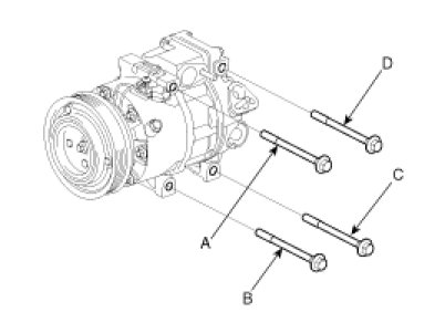 1. Make sure of the length of compressor mounting bolts, and then tighten it A->B->C->D order.