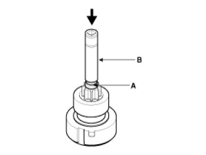 Using a suitable pulling tool (A), pull the overrunning clutch stop ring (B) over the stopper (C).