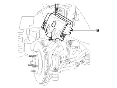 4. After loosening the bolts (A), remove the caliper assembly (B) and suspend it with wire.