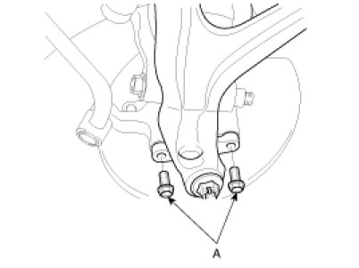 6. Remove the 2 bolts (A) and disconnect the knuckle from the lower arm assembly.