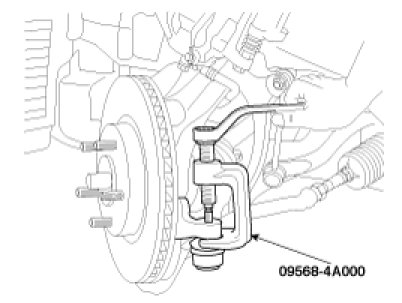 7. Using the special tool (09568-4A000), disconnect the tie rod end from the knuckle.