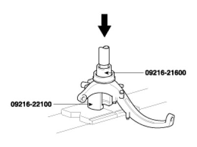 2. Using the special tool (09216-21100), press-in the bearing to the knuckle.