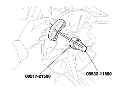 5. Tighten the hub to the knuckle to 200 Nm (20 kgf-m, 148 lb-ft) with the special tool (09517-21500).