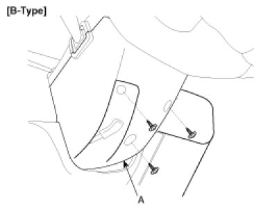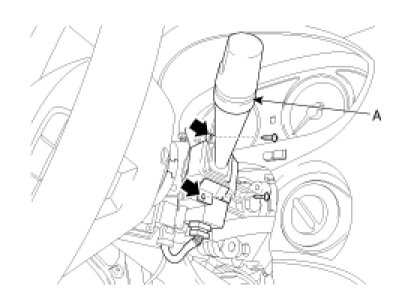 2. Remove the steering column upper and lower shrouds (A) after removing 3 screws.