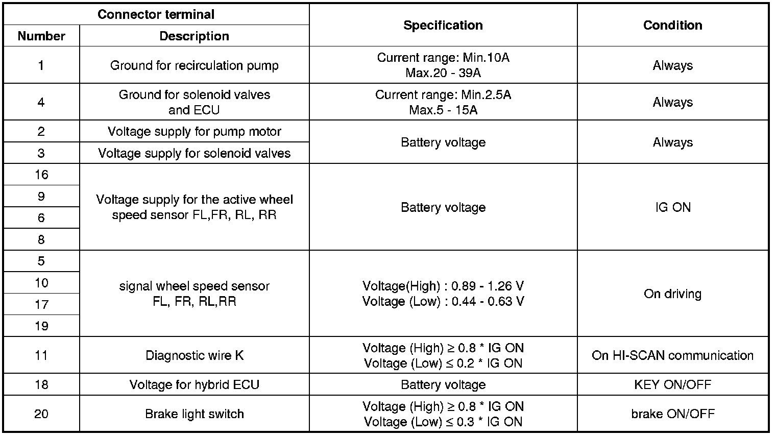 ECU Connector Input/Output(ABS)