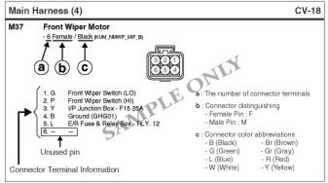 - To make it easy to distinguish connectors, the connector in the picture is indicated being installed in the vehicle.