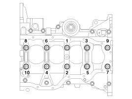 - The main bearing cap bolts are tightened in 2 progressive steps.