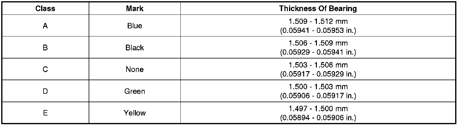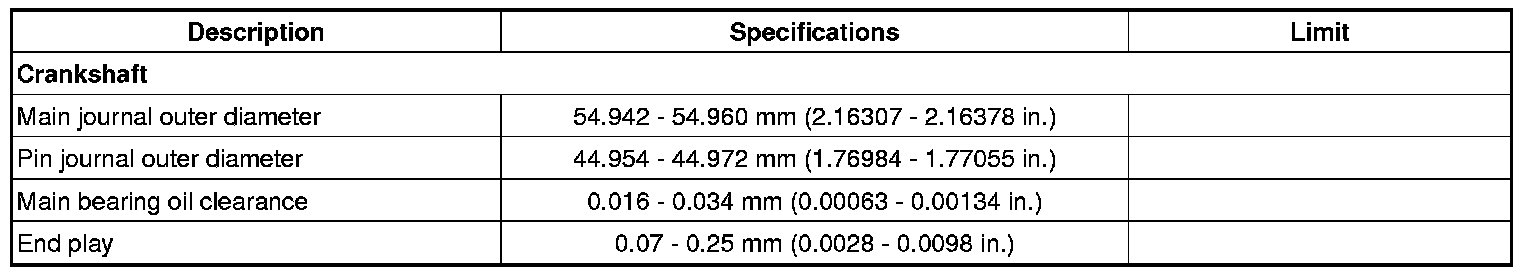 Crankshaft Main Bearing: Specifications