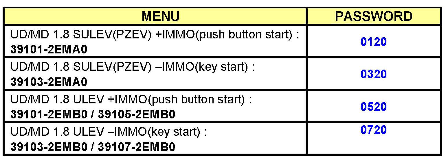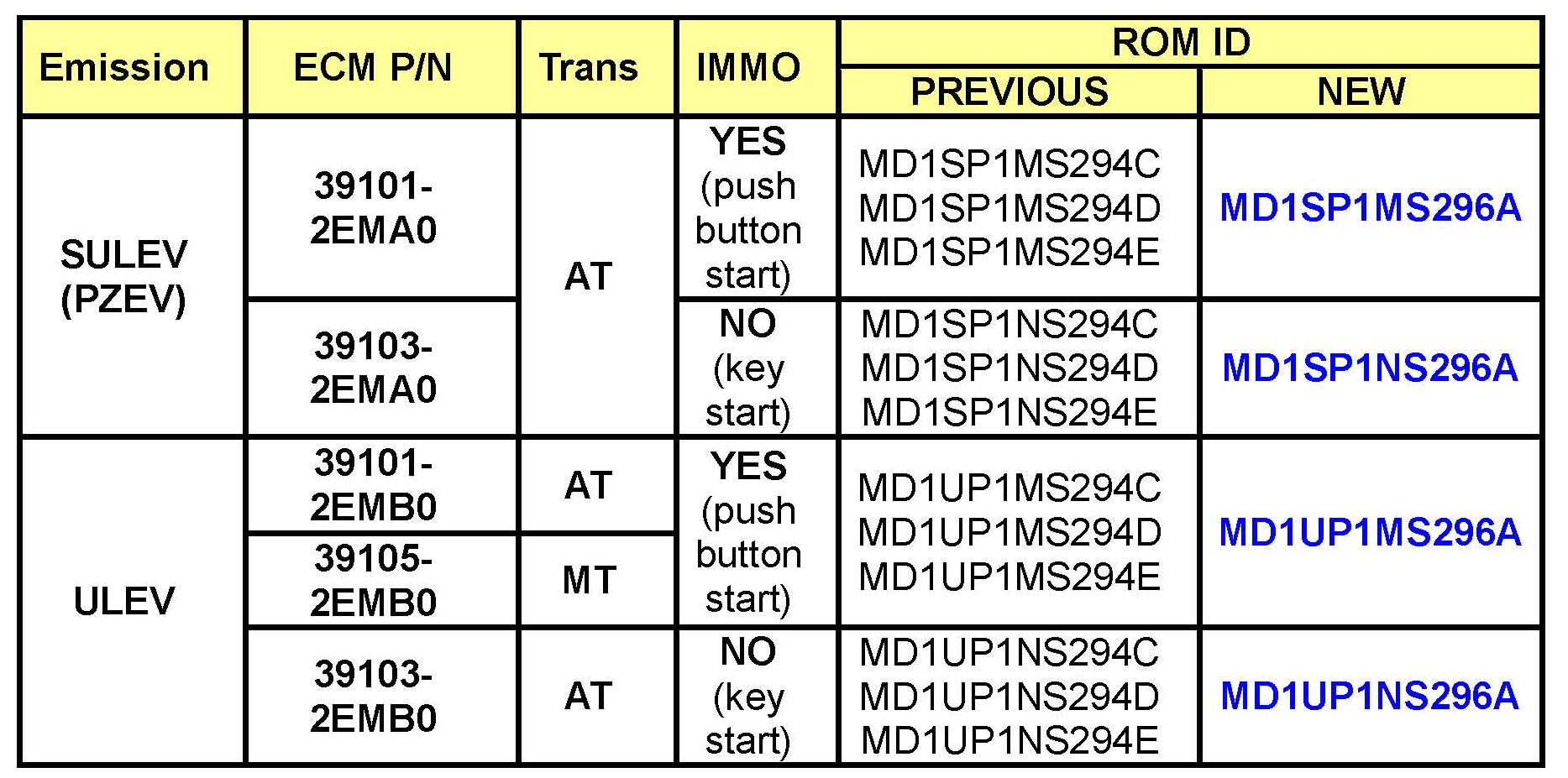This TSB applies if the vehicle ROM ID is listed in the PREVIOUS column of the ROM ID Table below. The ROM ID in the NEW column was the latest available ROM ID at the date of this TSB publication, however, you may select a later event number if one is shown in the GDS ECM update list, even if it describes another issue. This would generate a more recent ROM ID than shown below, but would also include the update from this TSB.