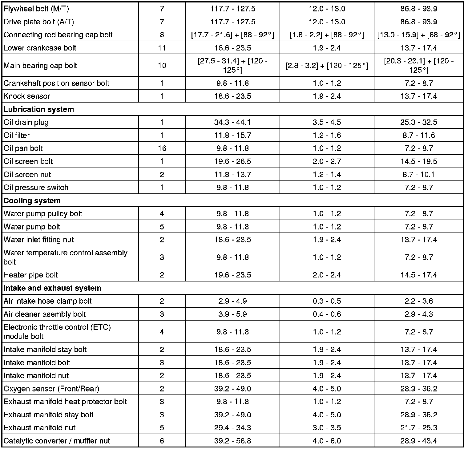 Tightening Torques