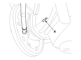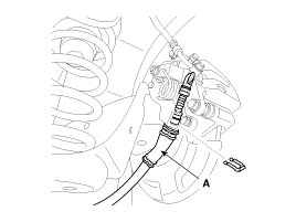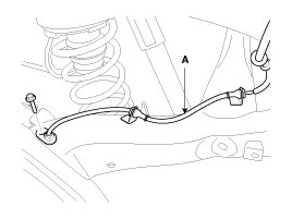 3. Loosen the bolt and then remove the wheel speed sensor cable (A).