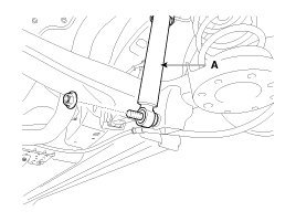 10. Loosen the bolt & nut and then remove the rear shock absorber (A) from the torsion beam axle.