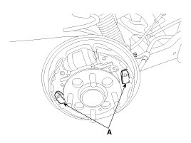 4. Remove the brake caliper assembly(B) from the torsion beam axle by loosening the bolts (A).