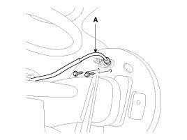 2. Loosen the bolt and then remove the parking brake cable (A) from the caliper.