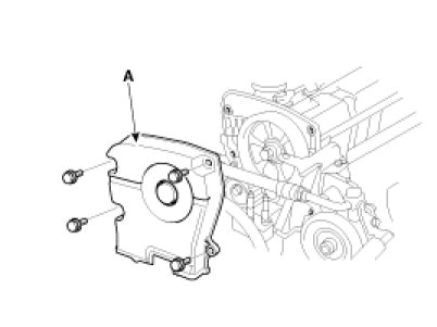 14. Install the timing belt lower cover (A) with 5 bolts (B).