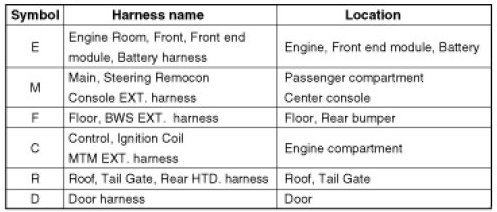 * It depends on vehicles, it is necessary to check the harness name symbol on the harness layouts for detailed symbol.