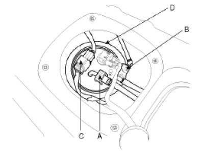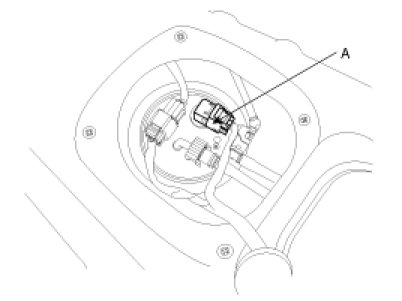 (3) Disconnect the fuel pump connector (A).