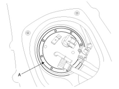 4. Remove the fuel pump plate cover (A) with the special service tool (SST No.: 09310-2B200), and then remove the fuel pump assembly