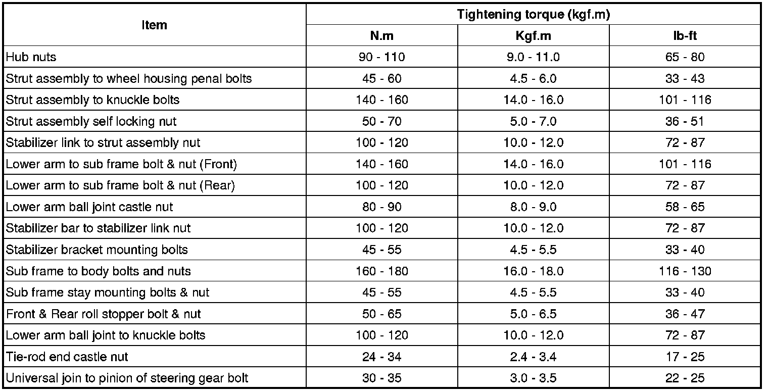 Tightening Torques