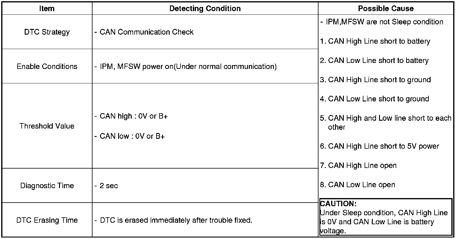MFSW (Multi Function Switch) reports DTC code by checking the error state of Turn Switch, head lamp switch, wiper switch.