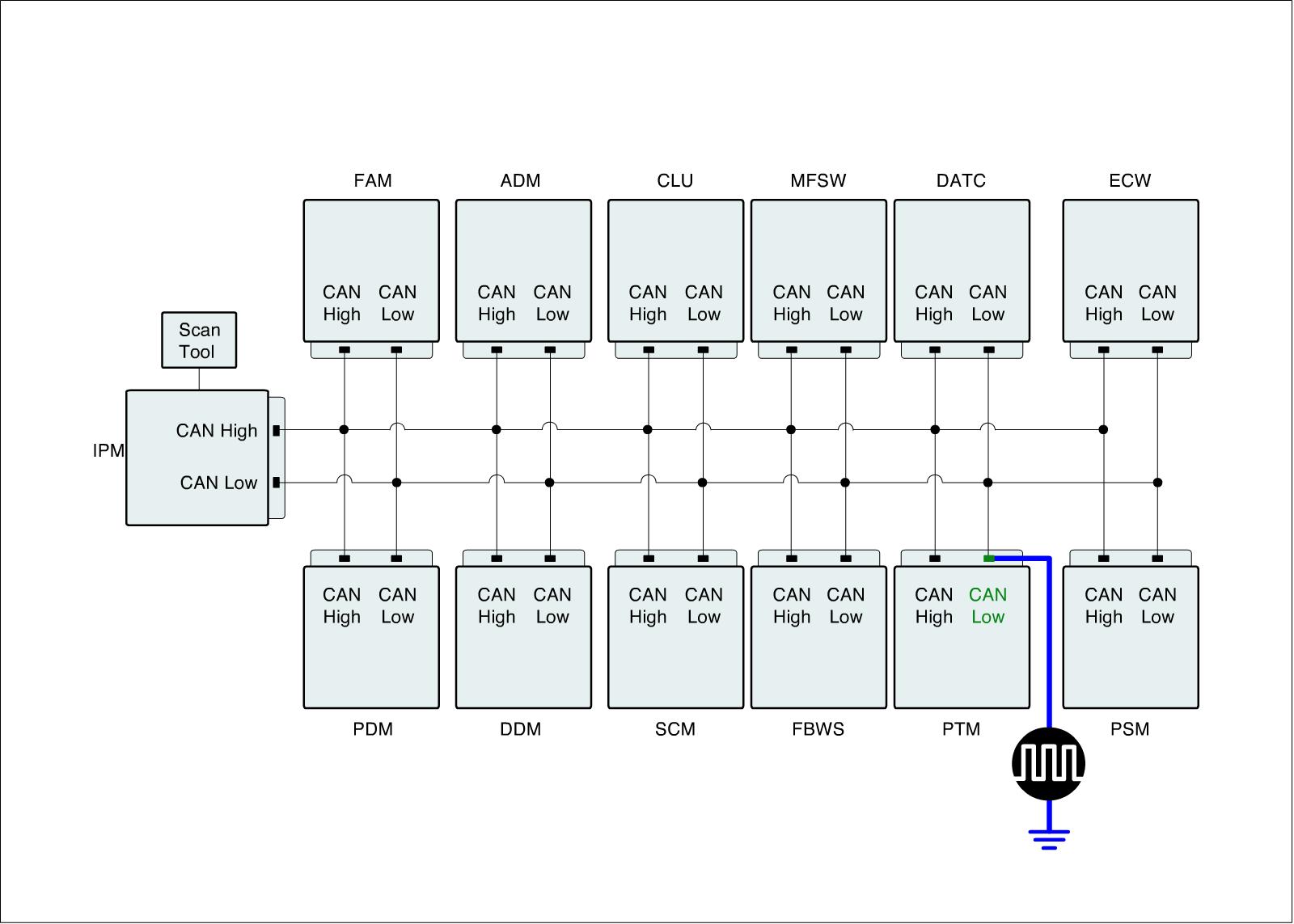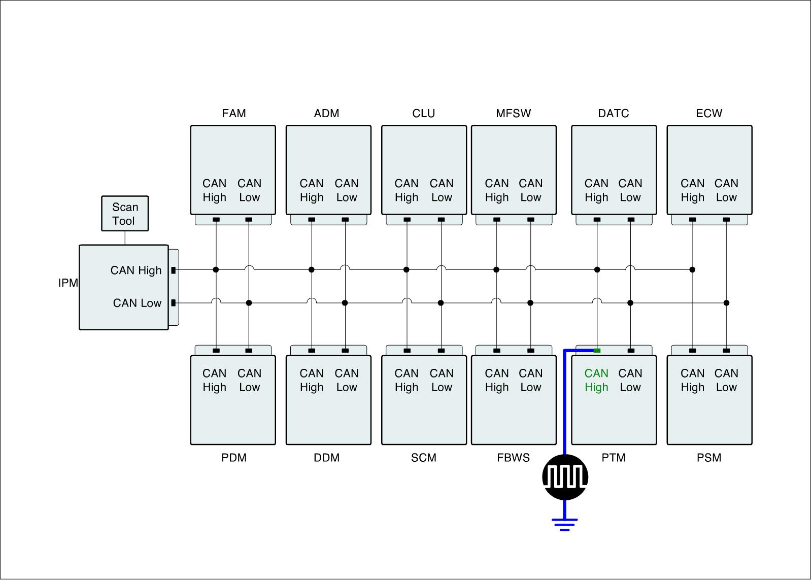 (3) Measure the signal waveform on PTM CAN Low line.