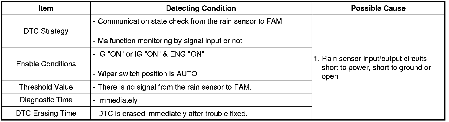 The Rain sensor transmits moisture status and the desired wiper speed to FAM by pulse signal.
