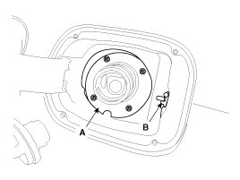 1. Remove the fuel fill door cap (A).