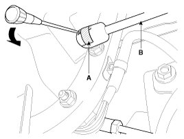 3. Remove the power trunk connecting rod (B) after removing the push rod pin (A).