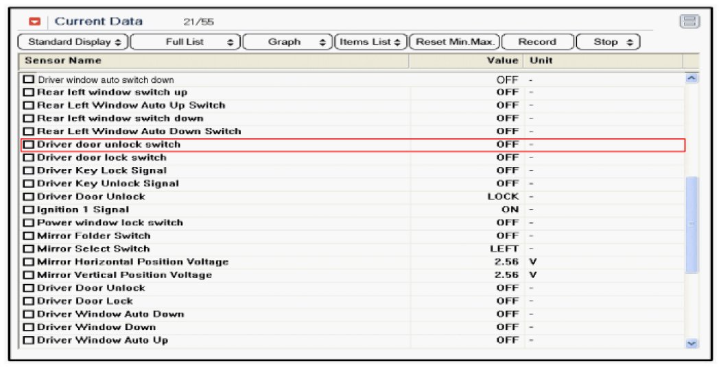4. Select "Input/output monitoring", if you will check current data of power door lock system. It provides input/output status of DDM/ADM.
