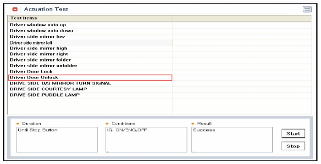 5. If you will check the power door lock operation forcefully, select "Actuation test".