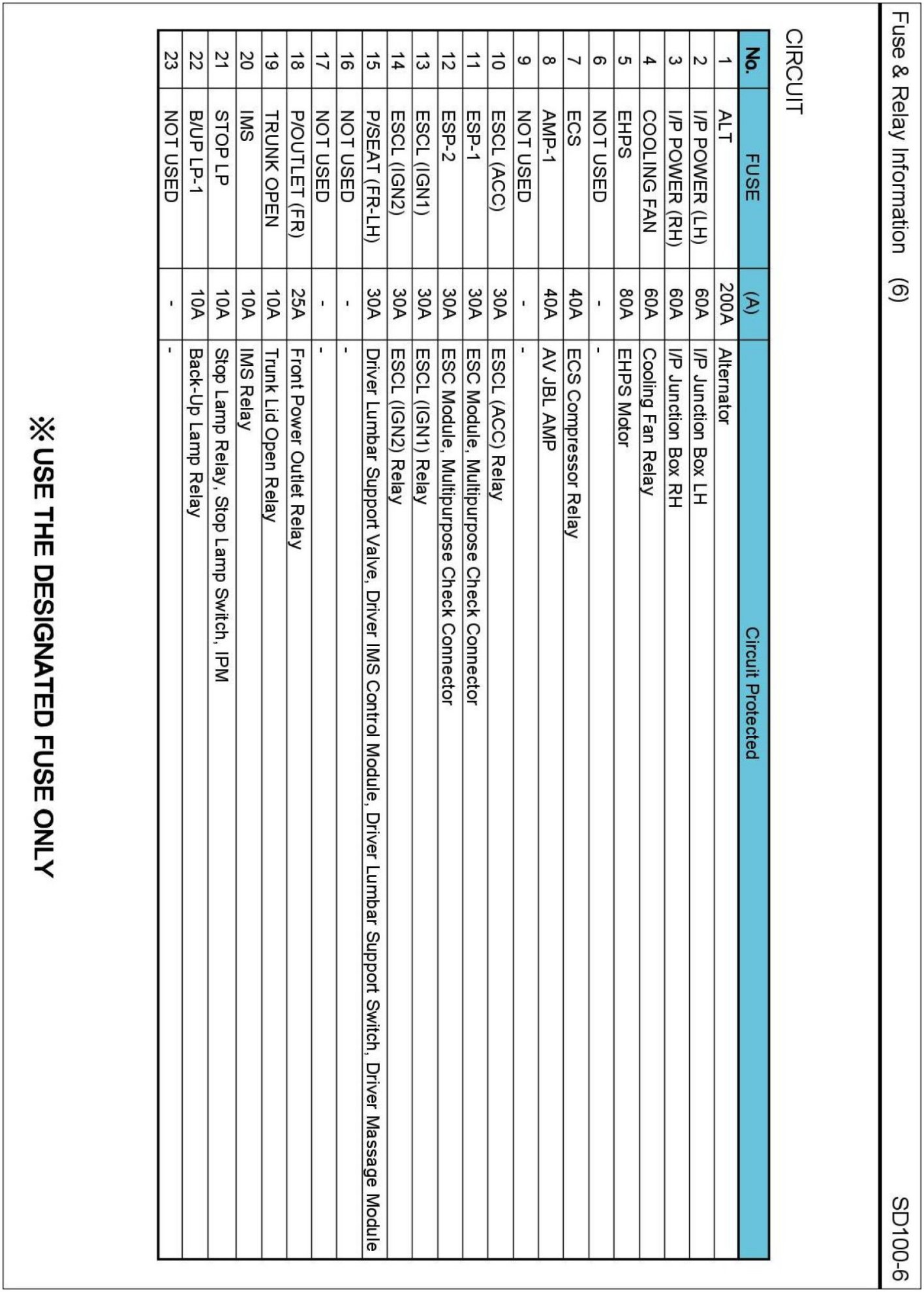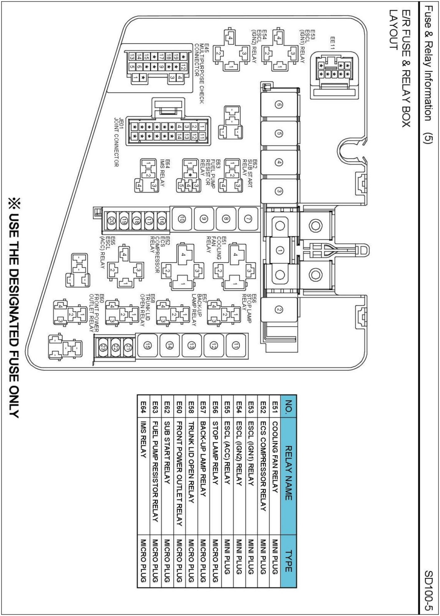 E/R Fuse & Relay Box Circuit Details: