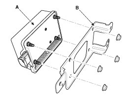 1. Assemble the smart cruise control unit (A) to the bracket (B) correctly.