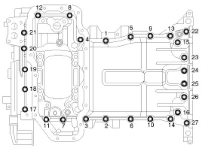 - Be careful not to damage the contact surfaces of Upper oil pan and lower oil pan.