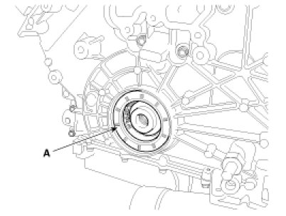 13. Remove the front oil seal (A).