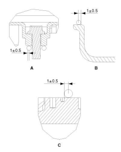 - Apply sealant in a 4.0 ± 0.5mm wide spot for the 4 T-joints (D).