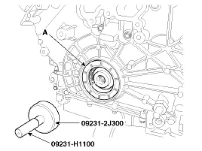 15. Using SST(09231-2J300, 09231-H1100), Install the front oil seal (A).