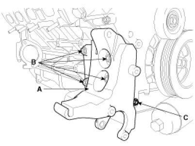 24. Install the alternator bracket (A).