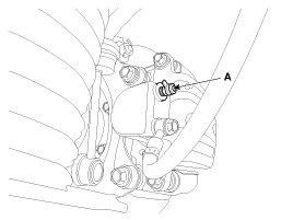 3. Loosen the right-rear brake bleed screw (A) to allow air to escape from the system. Then tighten the bleed screw securely.