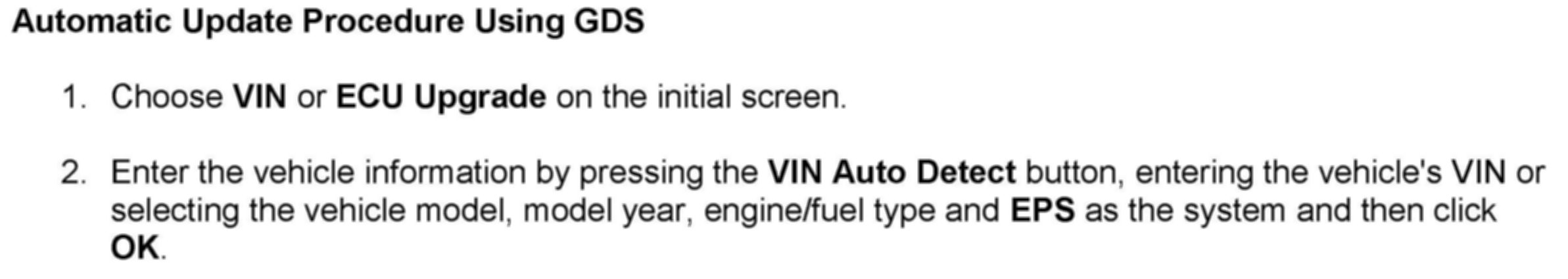 ^ Vehicles produced April 13, 2011 and later do not require the EHPS update procedure.