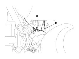 5. Remove the heated oxygen sensor (C) with the spanner after lifting the heater protector (B).