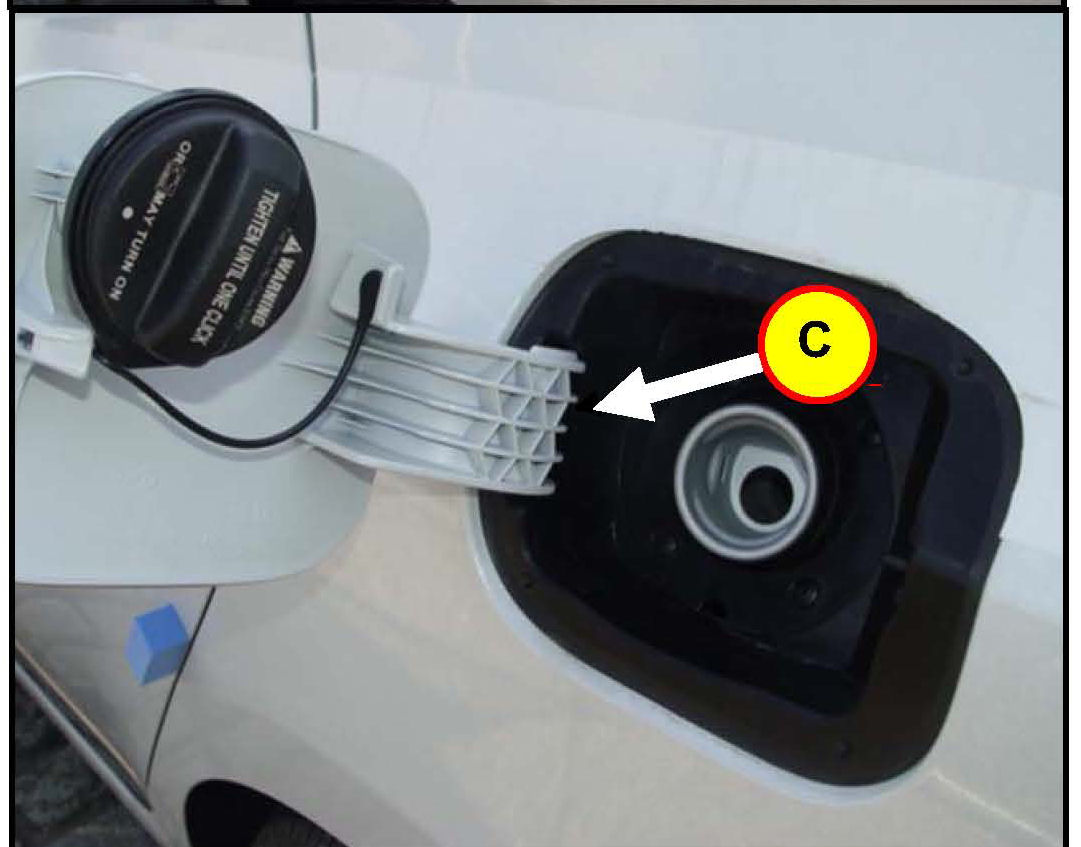2. Locate the fuel filler door spring (C).